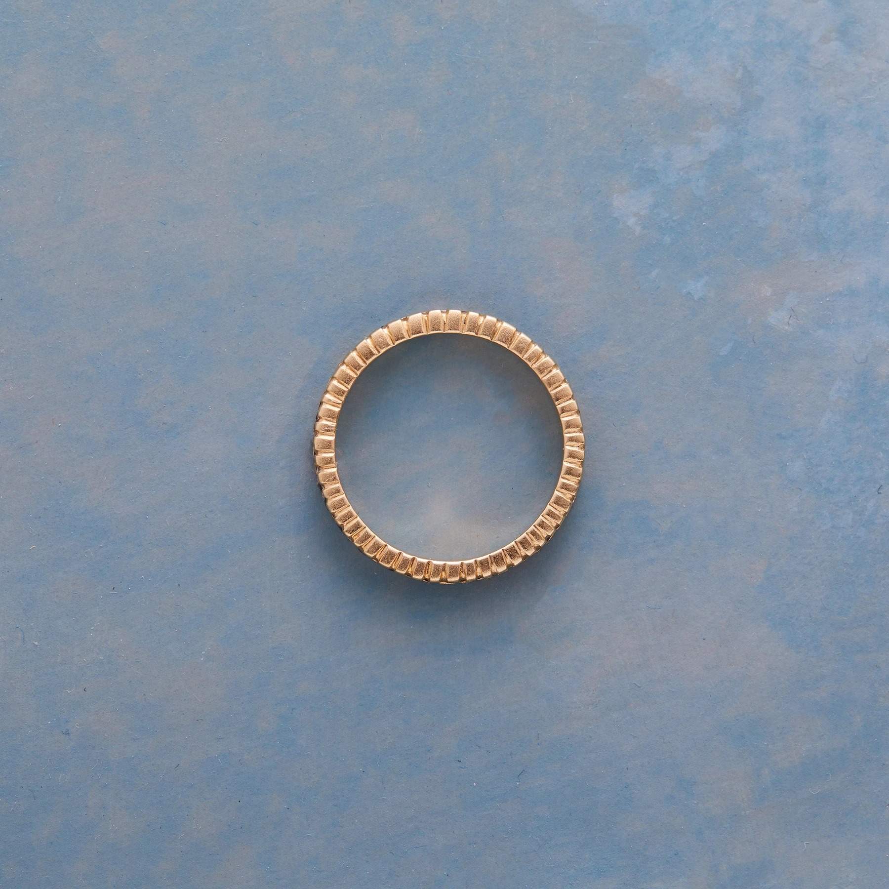 A never-ending procession of glistening black diamonds shimmers within a textured channel of satin-finished 14kt gold. By Shaesby Scott; handmade in USA. Whole sizes 5 to 9.
