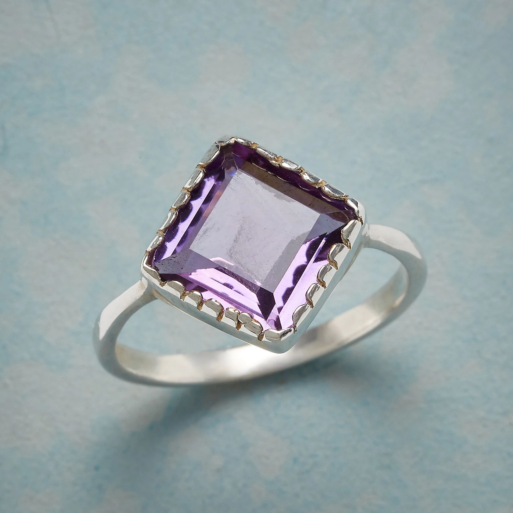 Set at a diamond angle, our amethyst’s sawtooth bezel curves at the base to sit comfortably on the finger in this sterling silver ring. An exclusive in whole and half sizes 5-9.