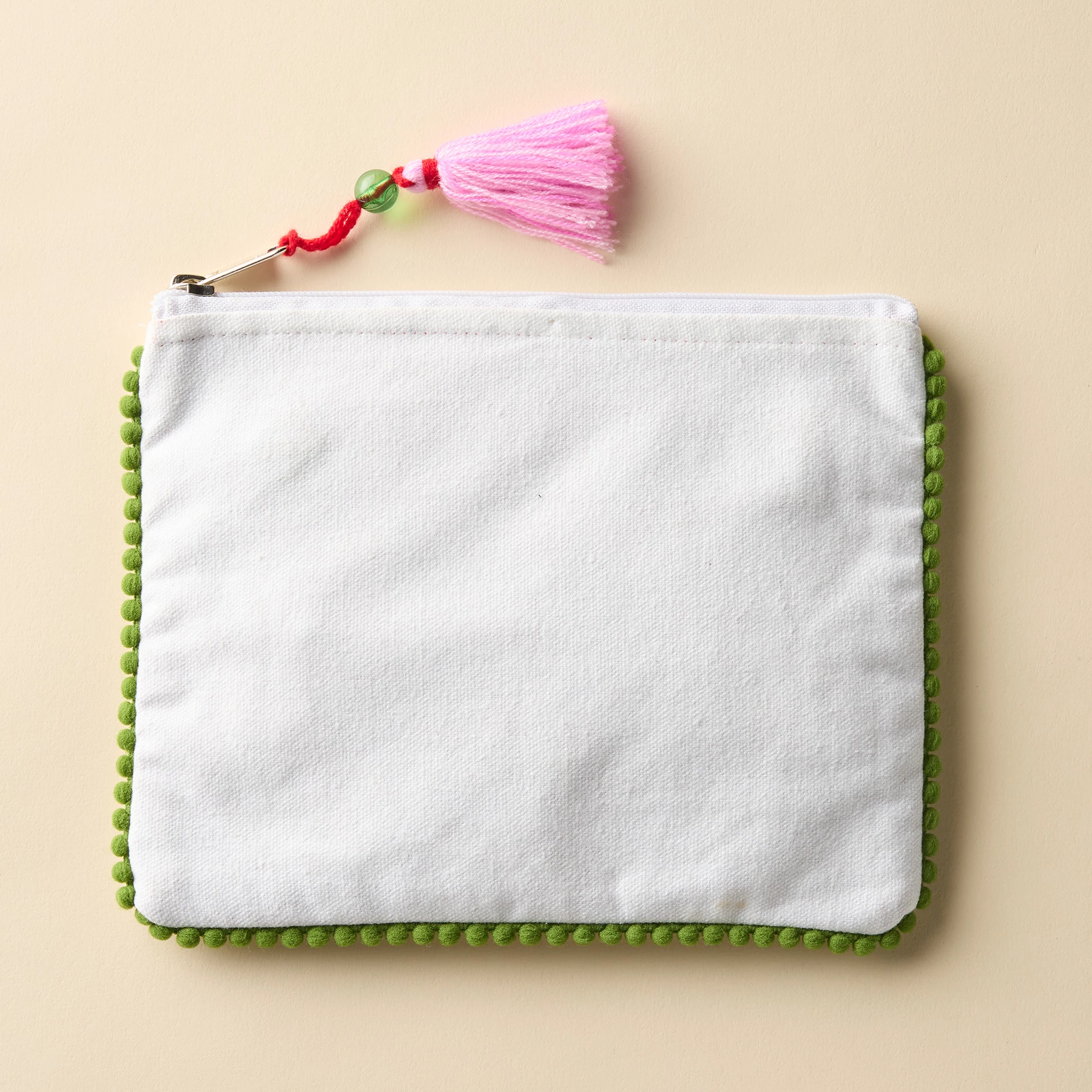 To hold treasures, to present a gift, to let her know she is the best mom ever. Handcrafted with a snapped leather earring and ring keeper inside. Zippered closure. Fully lined. Cotton. Exclusive. 8″W x 6″H.