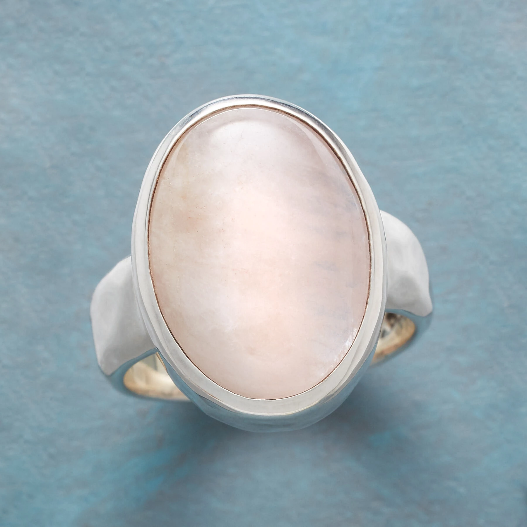 Hammered and polished by hand, sterling silver embraces morganite, its gentle blush a quiet beauty with great depth. Exclusive. Whole sizes 5 to 9.ย