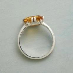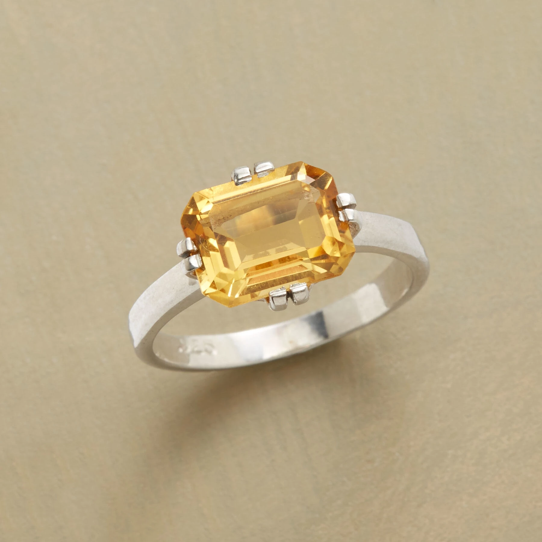 Like wearing a drop of golden sun, our faceted citrine is prong set in sterling silver. A handcrafted exclusive. Whole and half sizes 5-9.