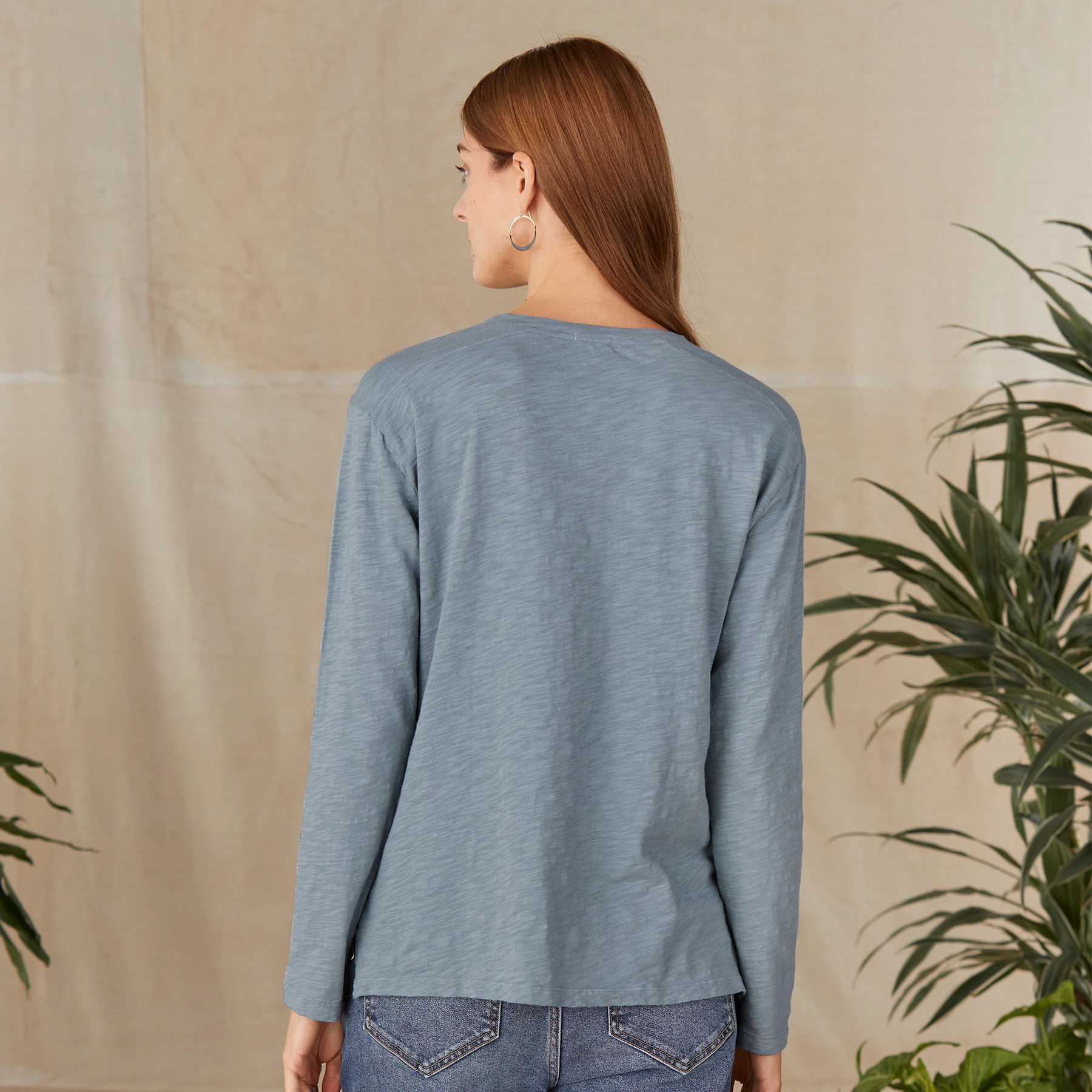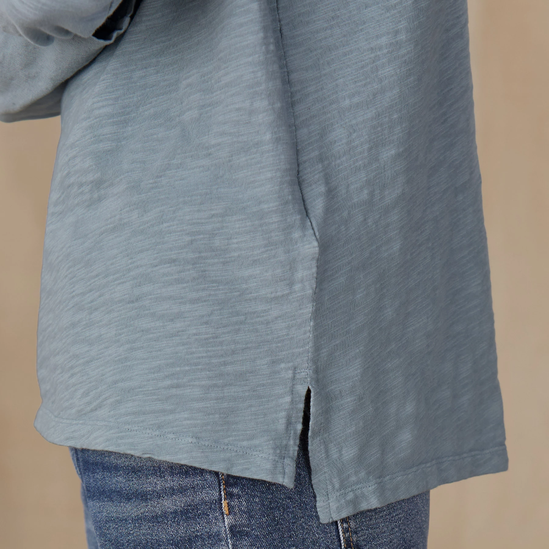 This garment-dyed, cotton slub top offers casual style and a relaxed fit with classic henley placket and side slits. Machine wash. Imported. Sizes XS (0 to 2), S (4 to 6), M (8 to 10), L (12 to 14), XL (16 to 18), XXL (20 to 22). Front approx. 25″L.