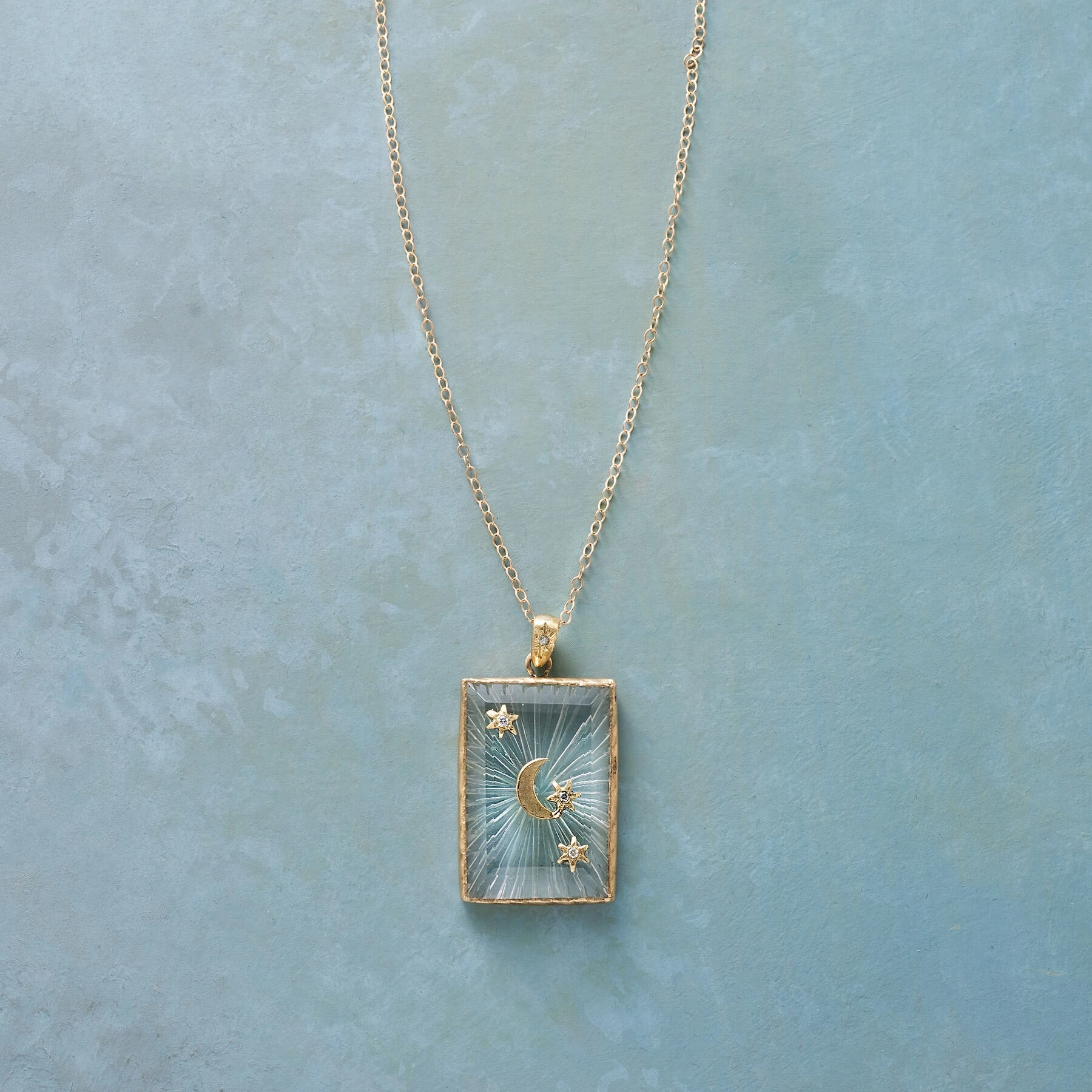 Sparkling amidst hand-carved crystal quartz, diamond-kissed stars and a crescent moon create celestial magic on this ethereal and exquisite handcrafted 14kt yellow gold necklace. Lobster clasp. Made in USA. 18″L.