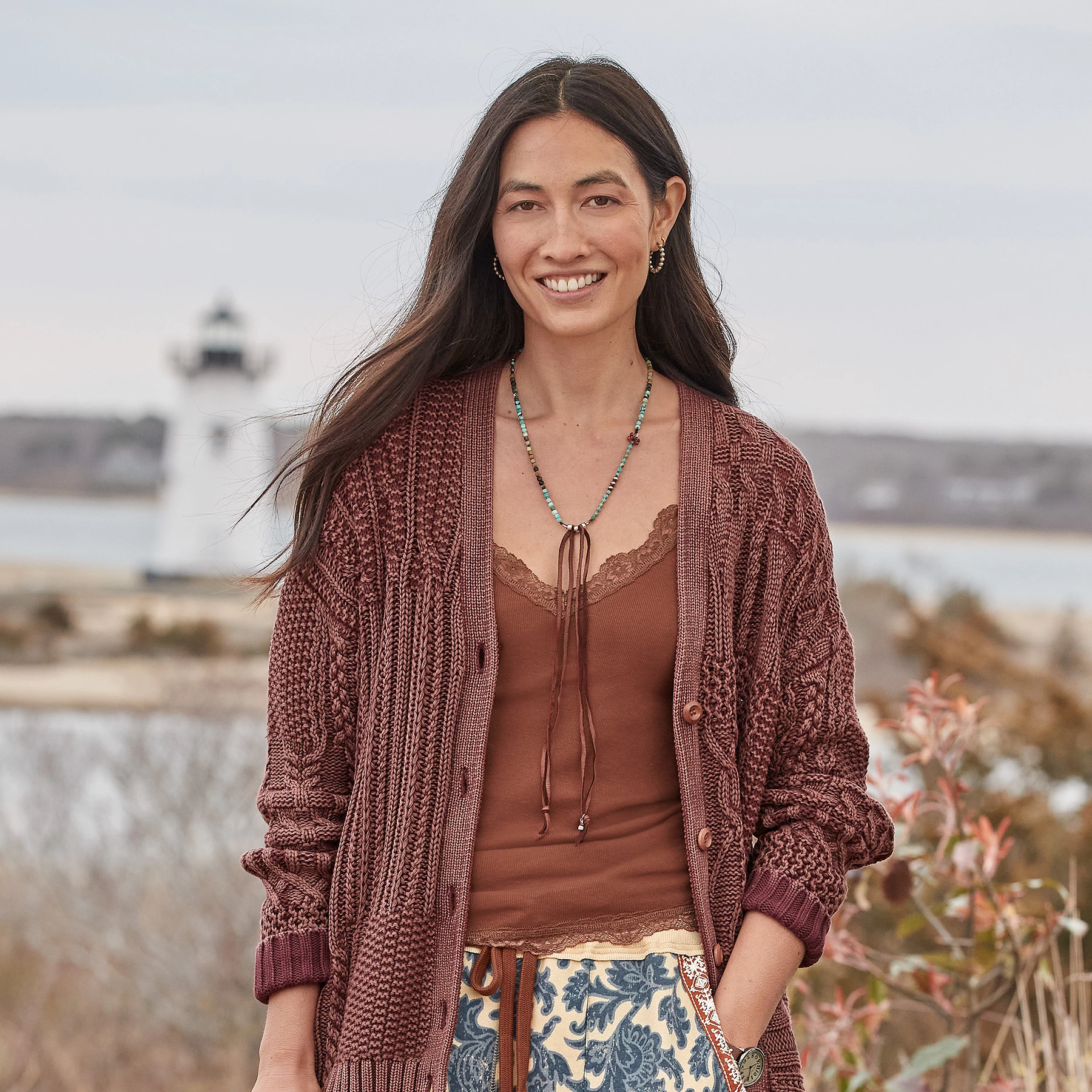 Soft, rib V-neck tank featuring lace trim, scoop back and binding detail at the arm holes. Cotton/spandex. Machine wash. Portugal. Exclusive. Sizes XS (0 to 2), S (4 to 6), M (8 to 10), L (12 to 14), XL (16 to 18), XXL (20 to 22). Approx. 26″L.