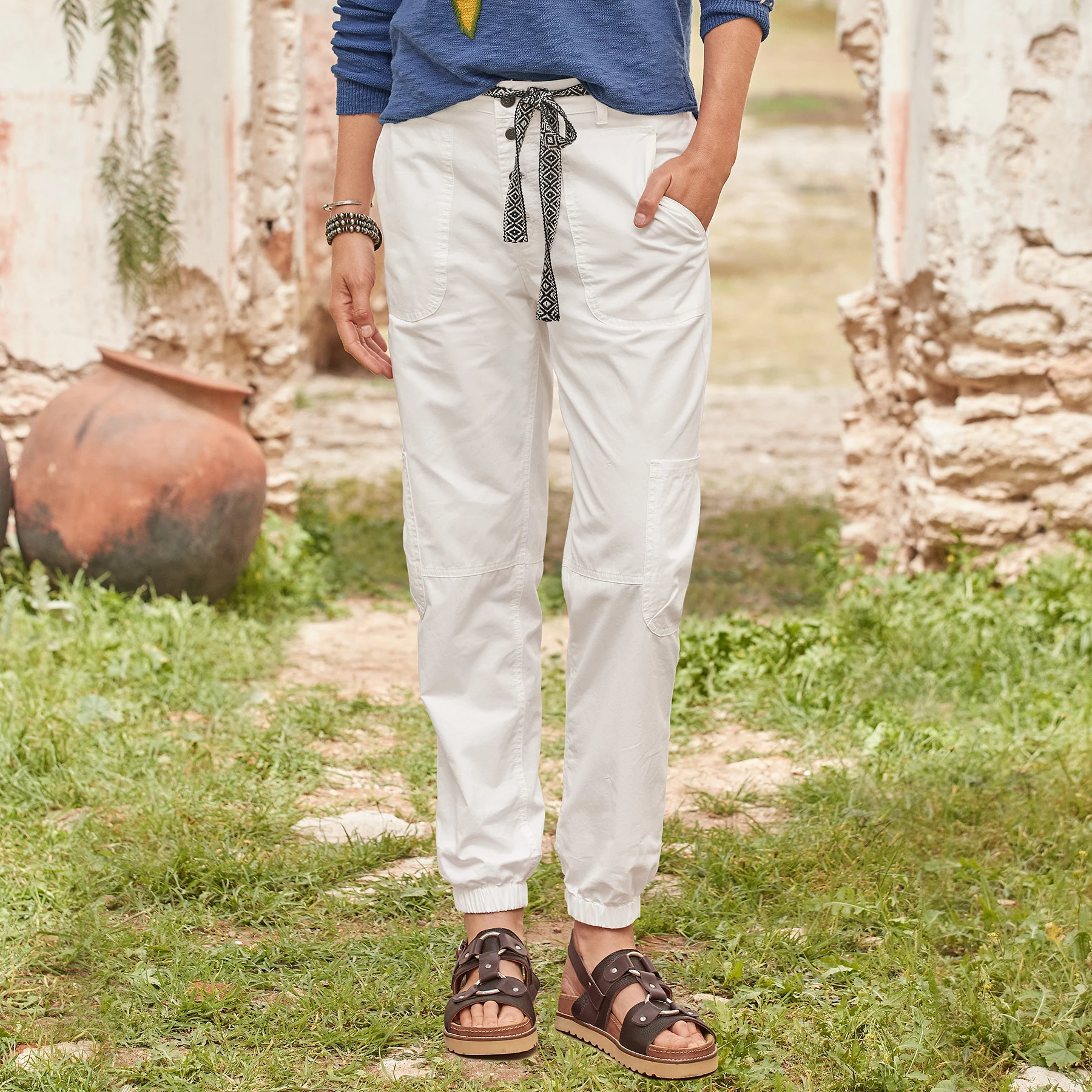 Our comfortable elastic hem joggers featuring woven jacquard belt, exposed button fly, side seam pockets and patch pockets front and back. Cotton. Machine wash. Imported. Exclusive. Sizes 2 to 16. 28″ inseam.