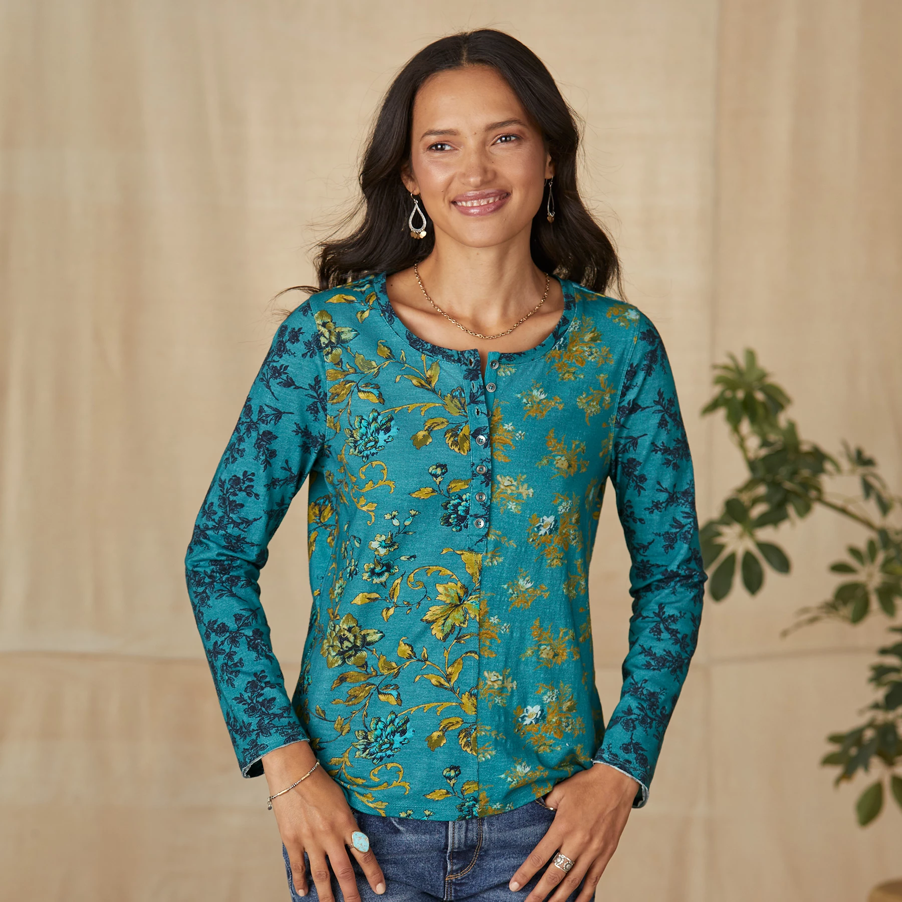 Our easy mixed patchwork print henley tee features antique metal buttons, twill tape placket and raw edge details. Cotton. Machine wash. Imported. Exclusive. Sizes XXS (00), XS (0โ2), S (4โ6), M (8โ10), L (12โ14), XL (16โ18). Approx. 23″l.