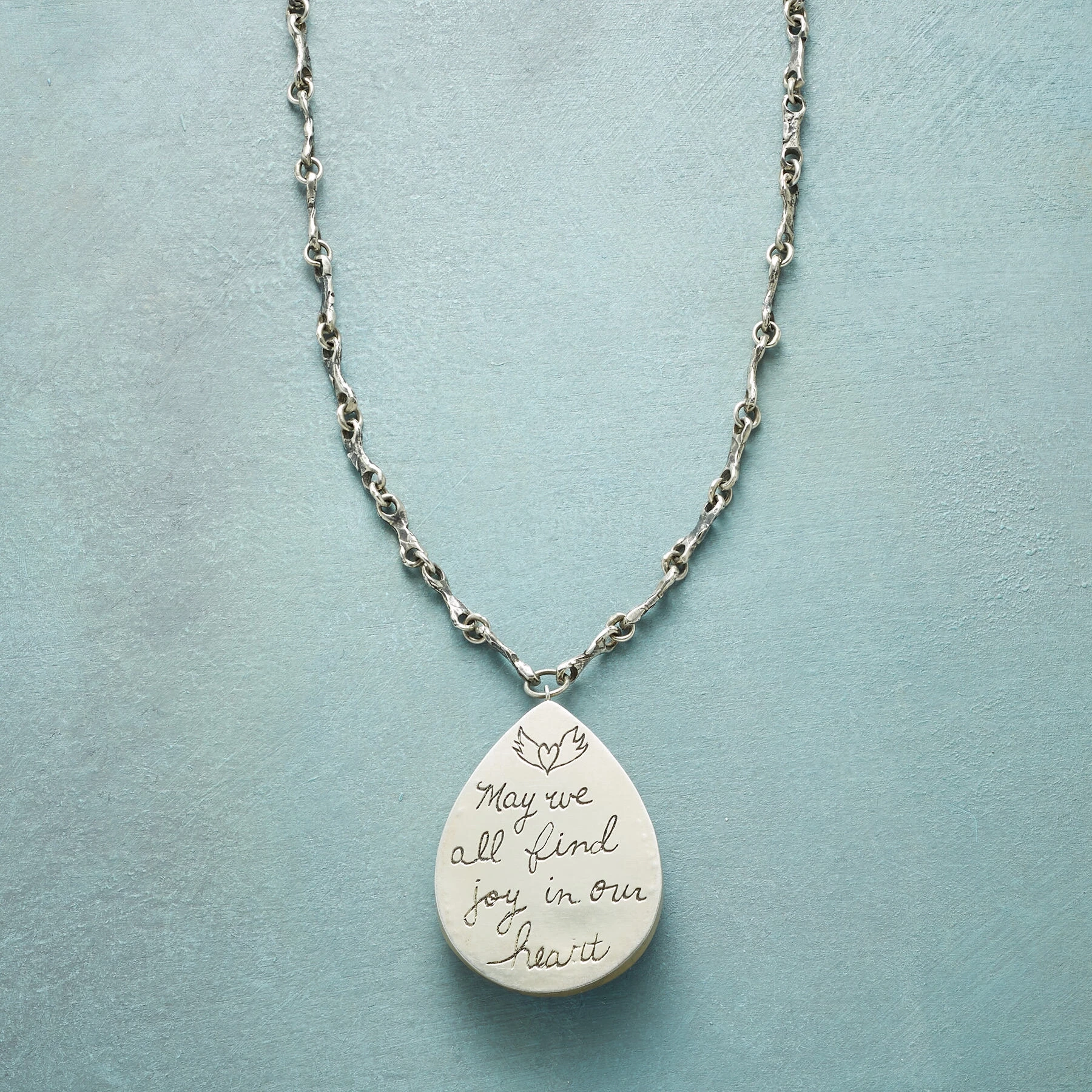 Inspired by the joy of discovering a secluded lake along the trailโa secret swimming hole all her ownโJes MaHarry crafted this pendant with lapis as vivid as deep blue water. Set in sunstruck 14kt gold, it’s backed in sterling silver inscribed “May we all find joy in our heart.” Sterling chain with lobster clasp. Handmade in USA. Exclusive. 22″ to 24″L.
