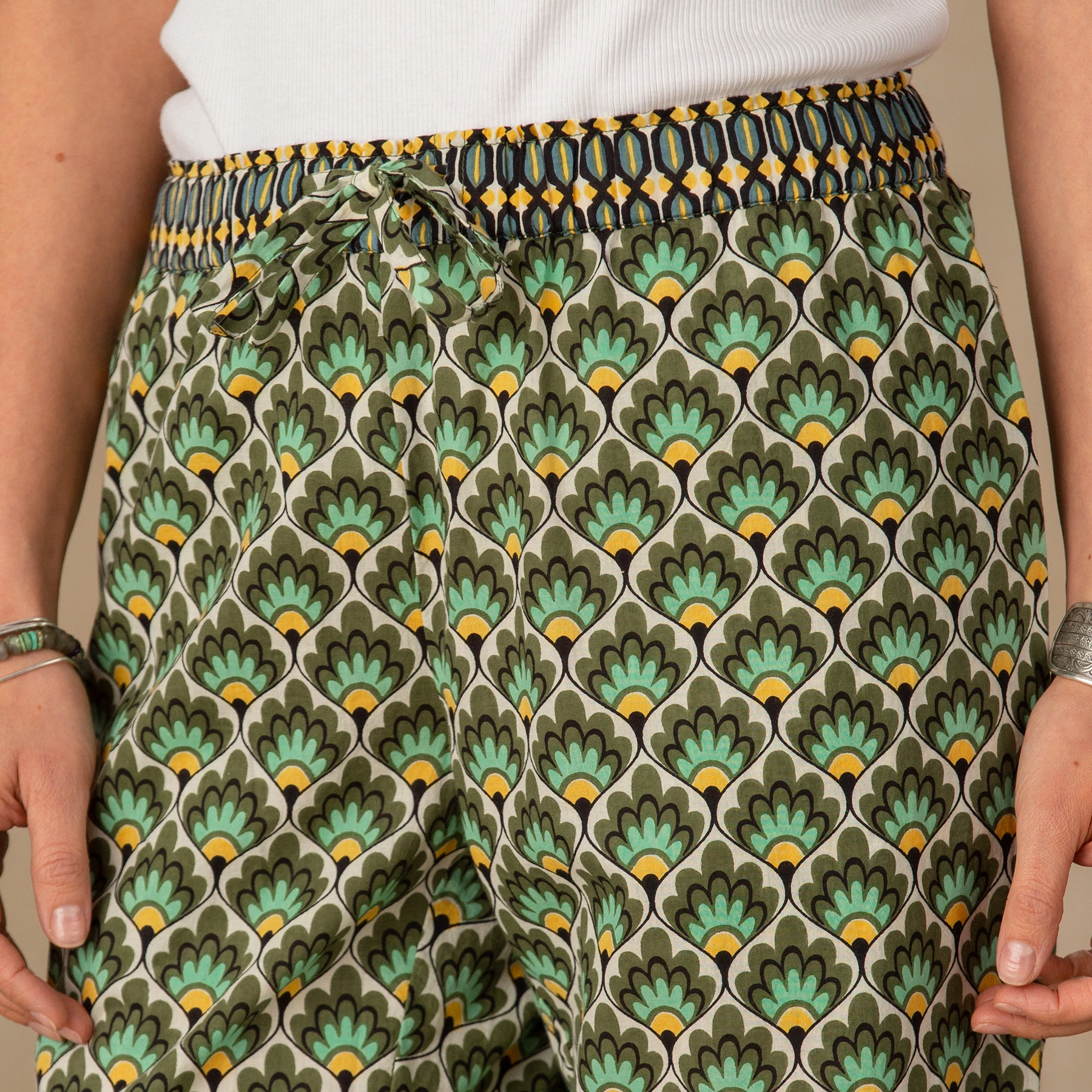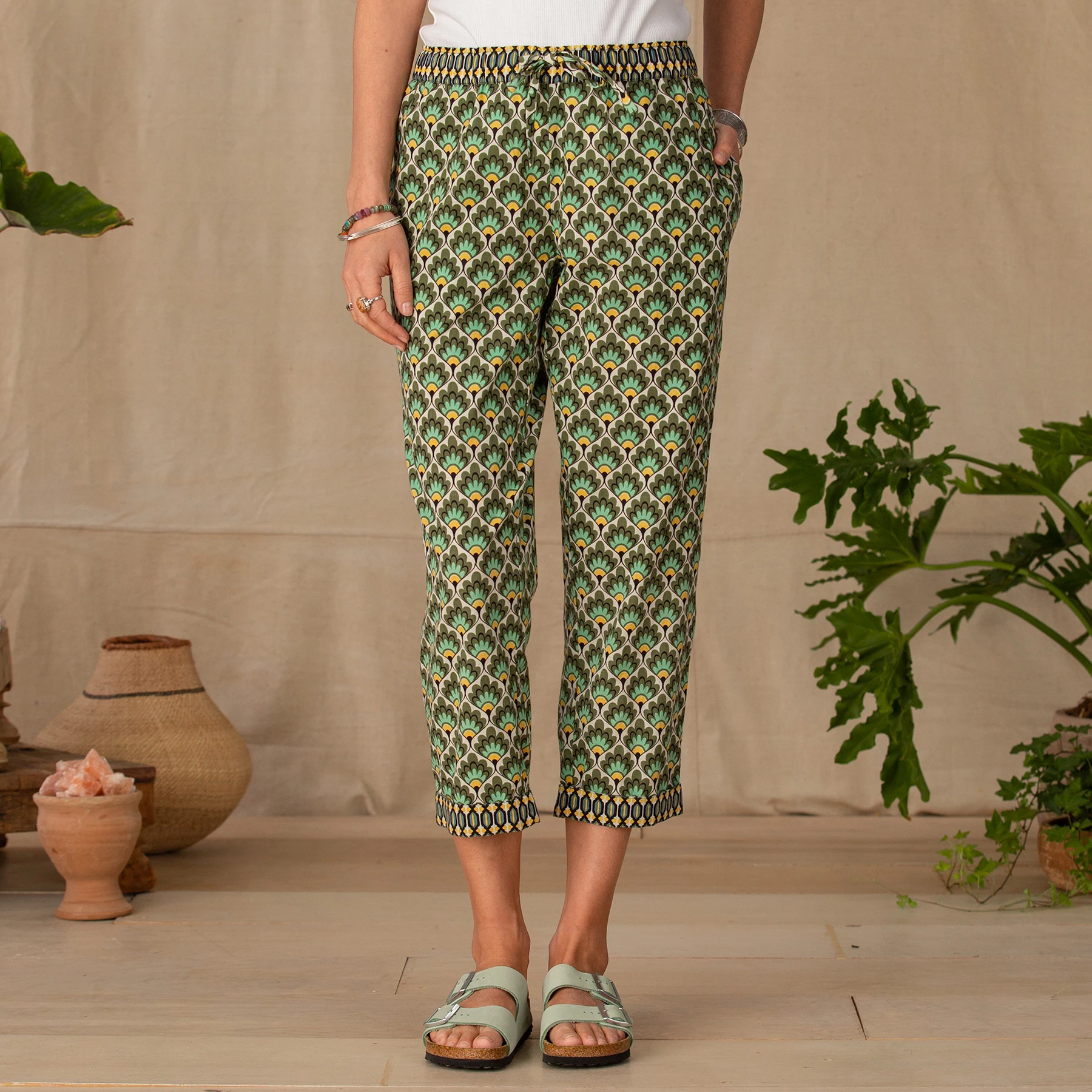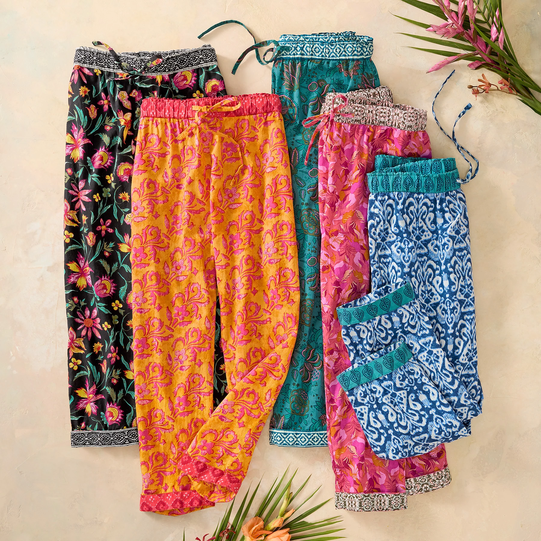 Perfectly comfortable for lounging, yet pretty enough to wear out on the town. Relaxed fit, drawstring pants in a vibrant print. Cotton. Machine wash. Imported. Exclusive. Sizes XS (0-2), S (4-6), M (8-10), L (12-14), XL (16-18), XXL (20-22). 23″ inseam.