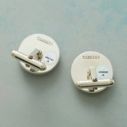 With unmistakable red stitching and bearing the small scuffs that come with game play, these sterling silver cufflinks, fashioned from an authentic MLB baseball, are sure to be a home run. Hallmarked with team name on back. Gift box included. Specify team of choice.