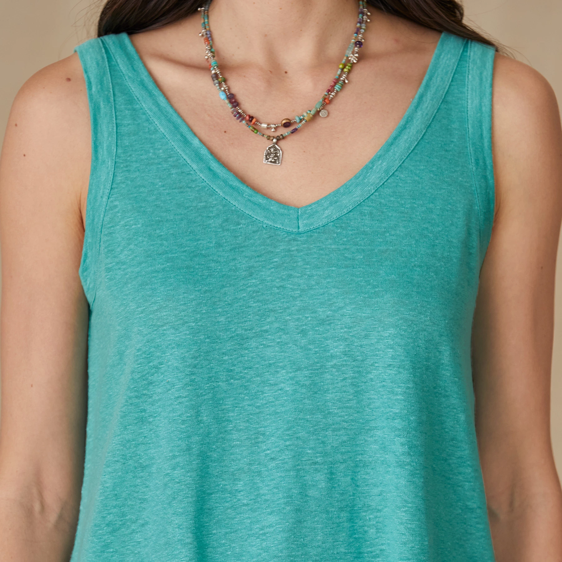 All the ease of linen in a flowing, A-line shaped tank with double-V neck and a finished, refined look. Hand wash. Portugal. Exclusive. Sizes XS (0 to 2), S (4 to 6), M (8 to 10), L (12 to 14), XL (16 to 18), XXL (20 to 22). Approx. 25-1/2″L.