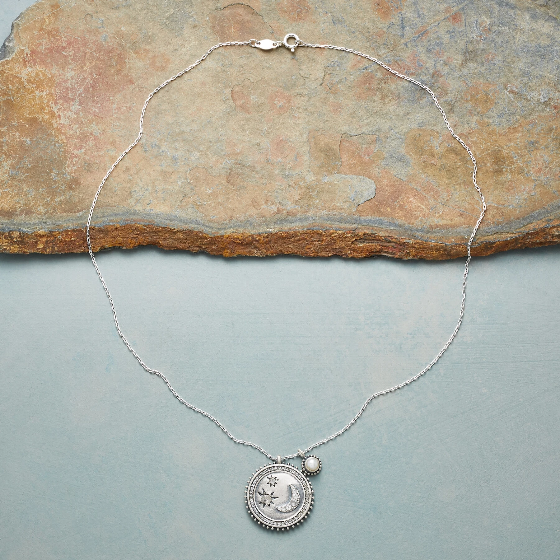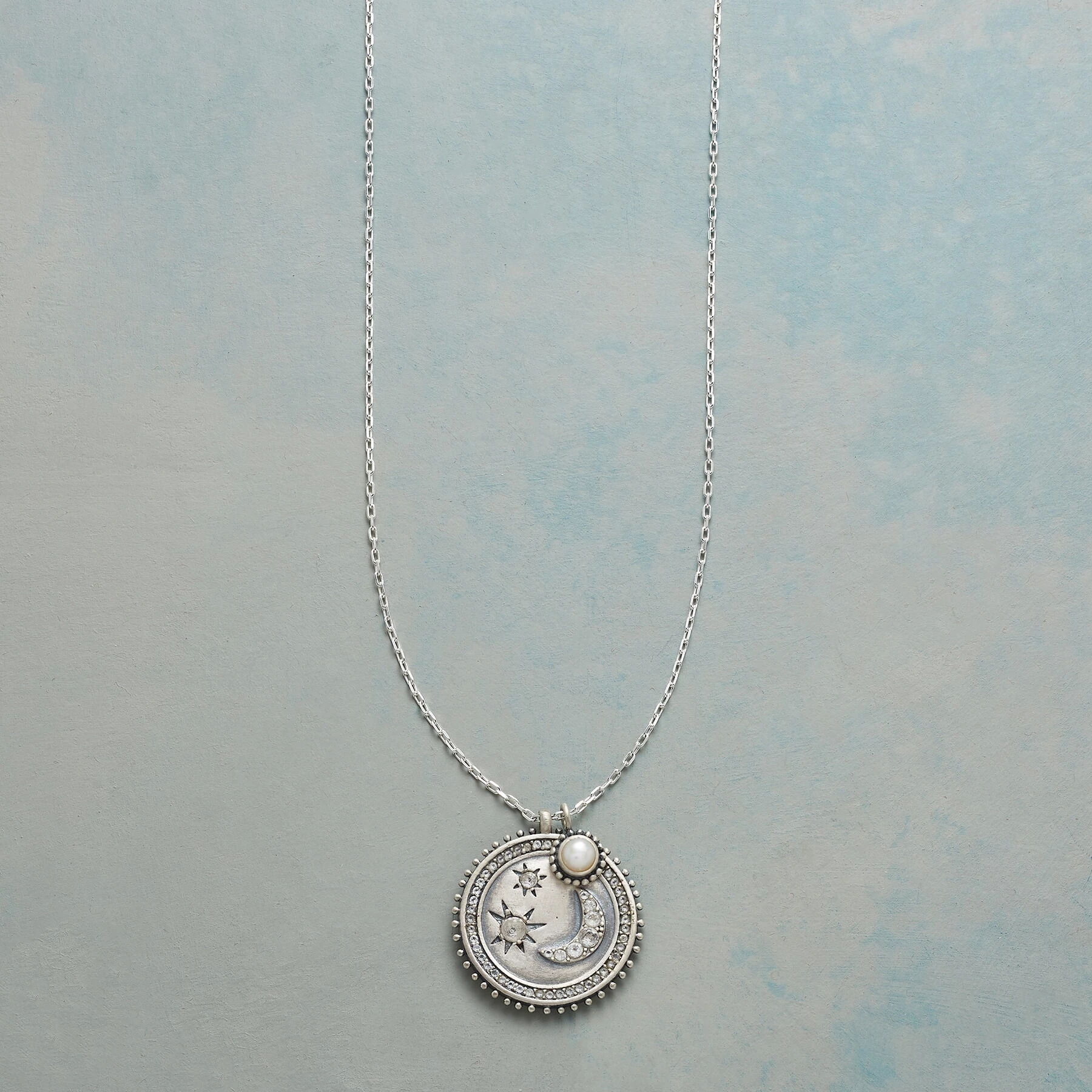 Give her the moon and the stars with a handcrafted necklace on which sparkling white topaz and a luminous freshwater pearl light up the heavens. Spring ring clasp. Exclusive. 18″L.