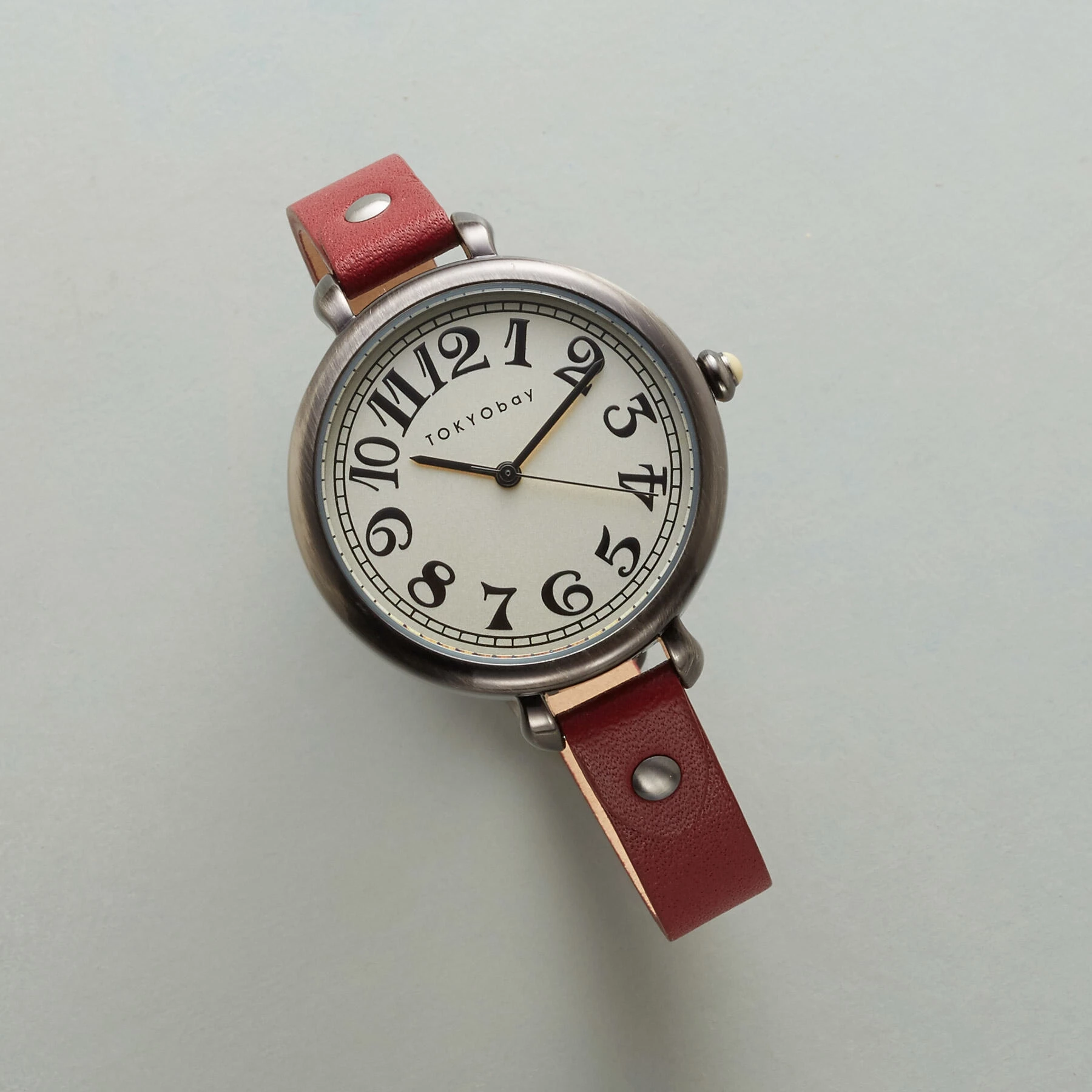 Elegant and playful, this watch with its bold, easy-to-read face and slender leather band is meticulously crafted with Japanese quartz movement and a stainless steel case and buckle. Exclusive. Fits wrists 6″ to 8″, 1-3/8″ dia. case.