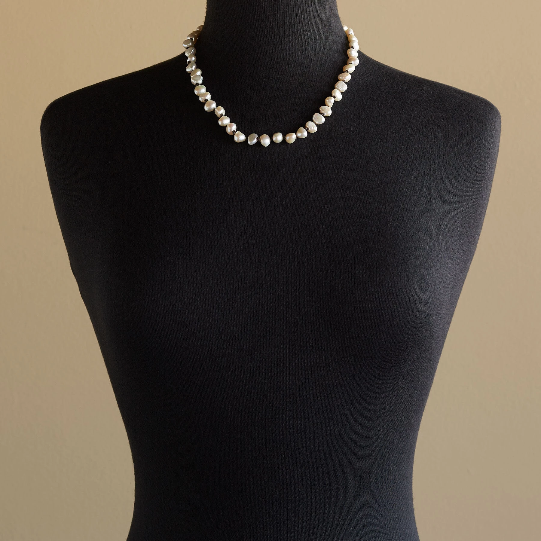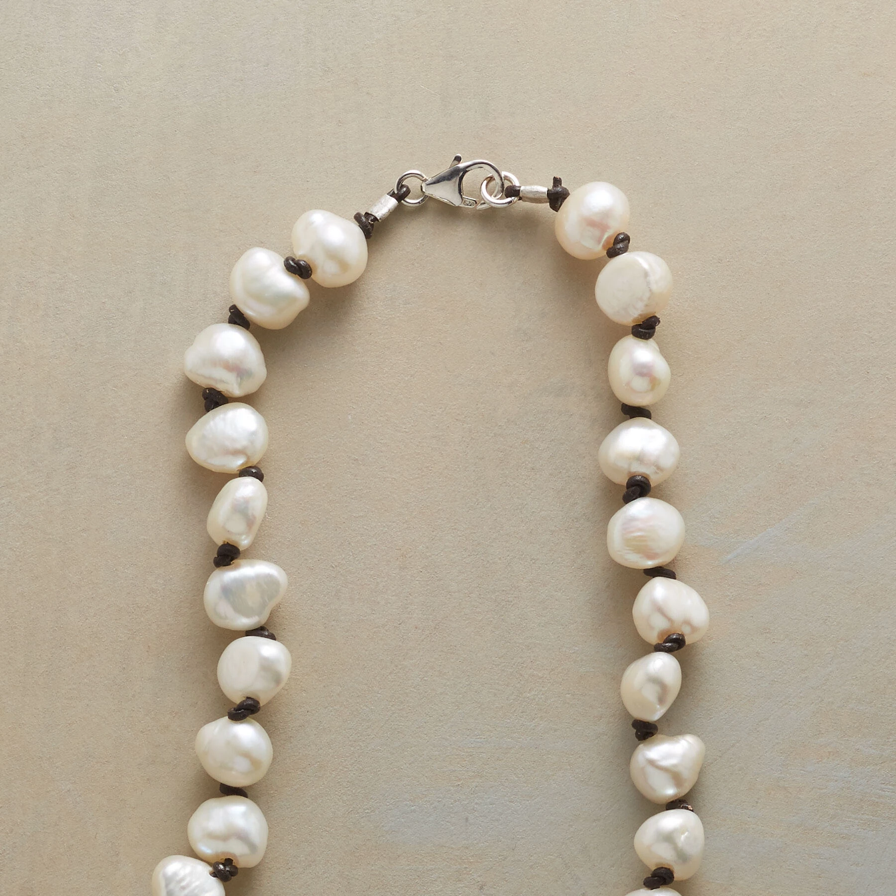In our hand-knotted pearl necklace, freshwater pearls divide a lifetime into chapters, each a story unto itself. Leather knots; sterling silver lobster clasp. Exclusive. Handcrafted in USA. 19″L.