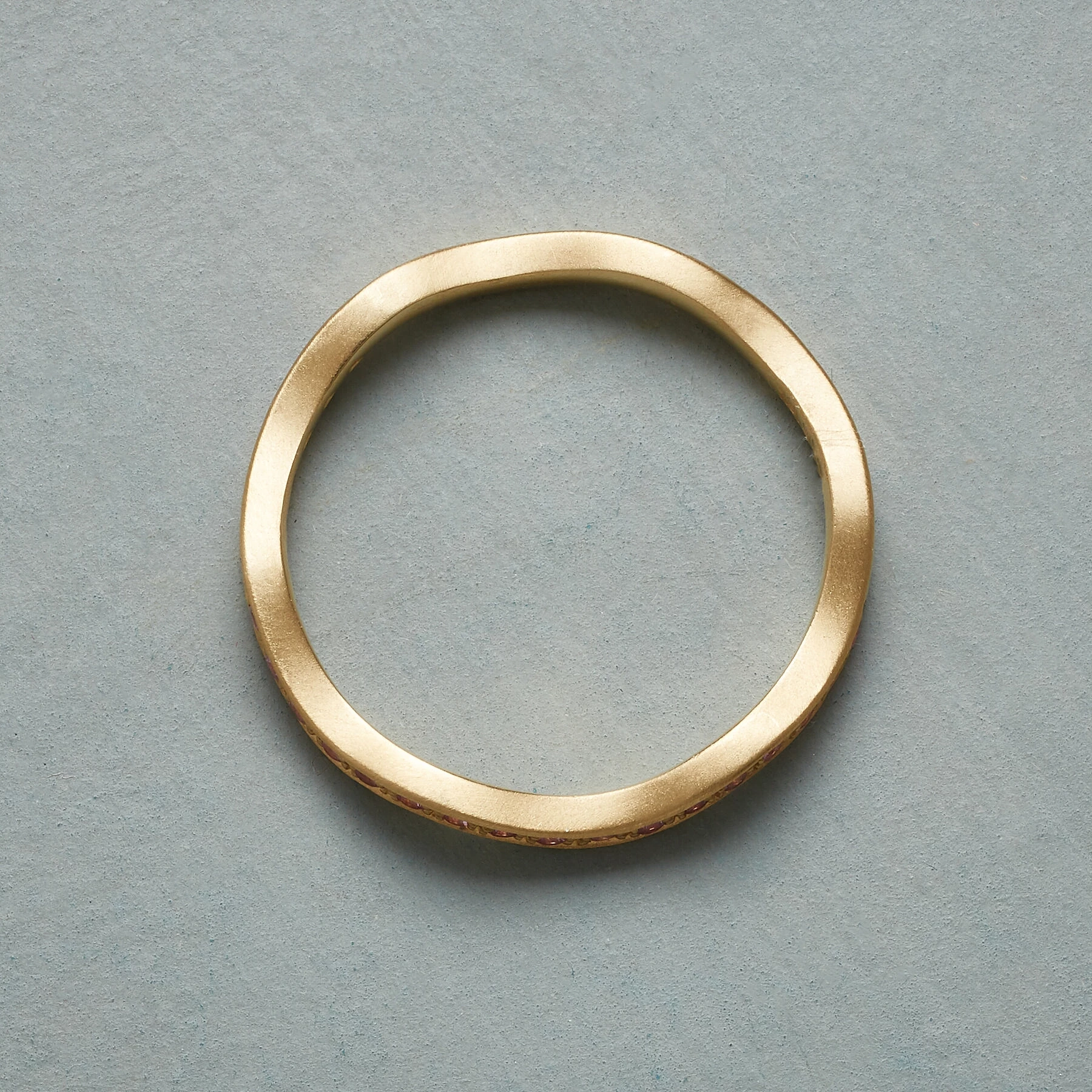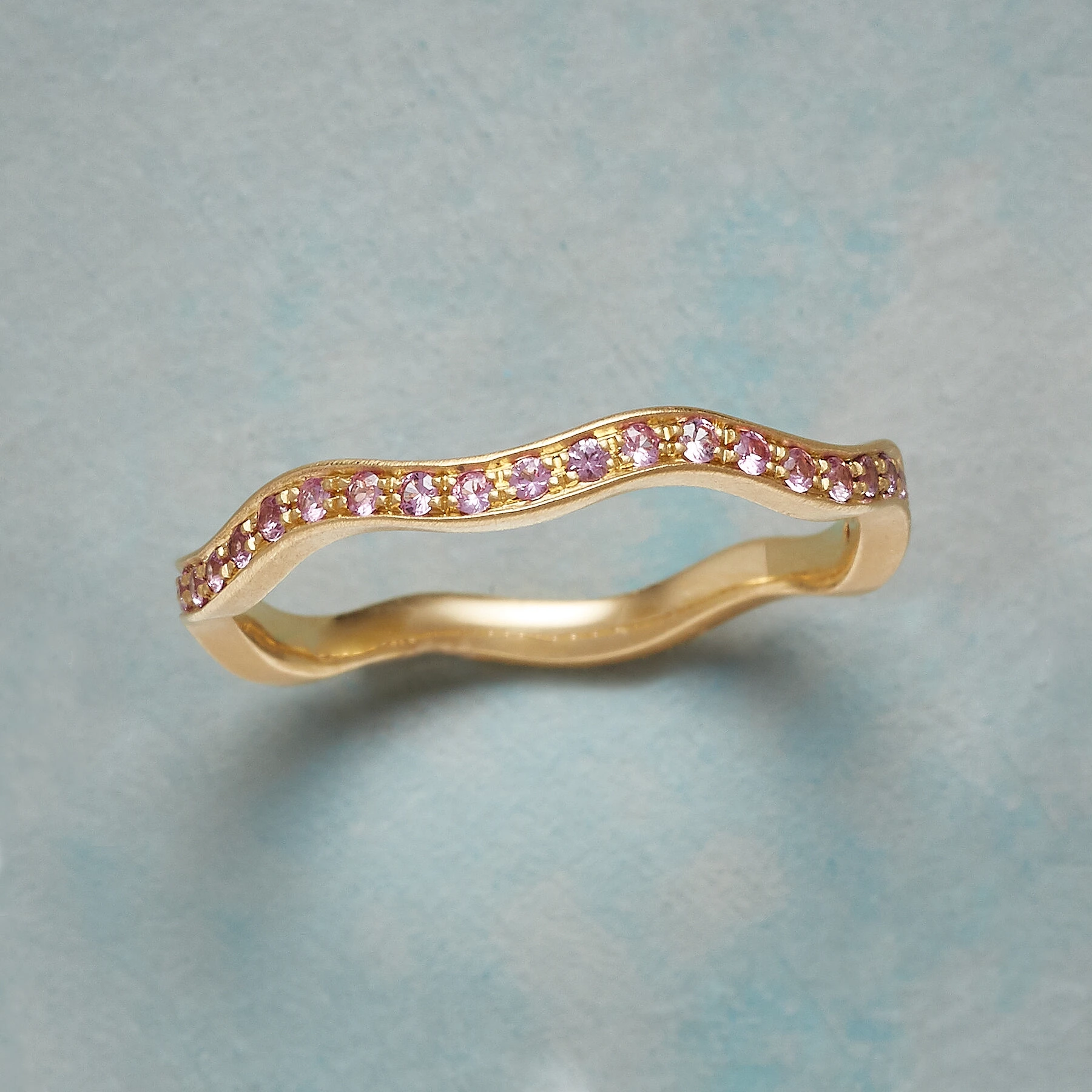 Anne Sportun’s wave of pink sapphire ebbs and flows around the finger in her ‘Pink Wave’ ring. Handmade of 14kt gold. Exclusive. Whole sizes 5 to 8.