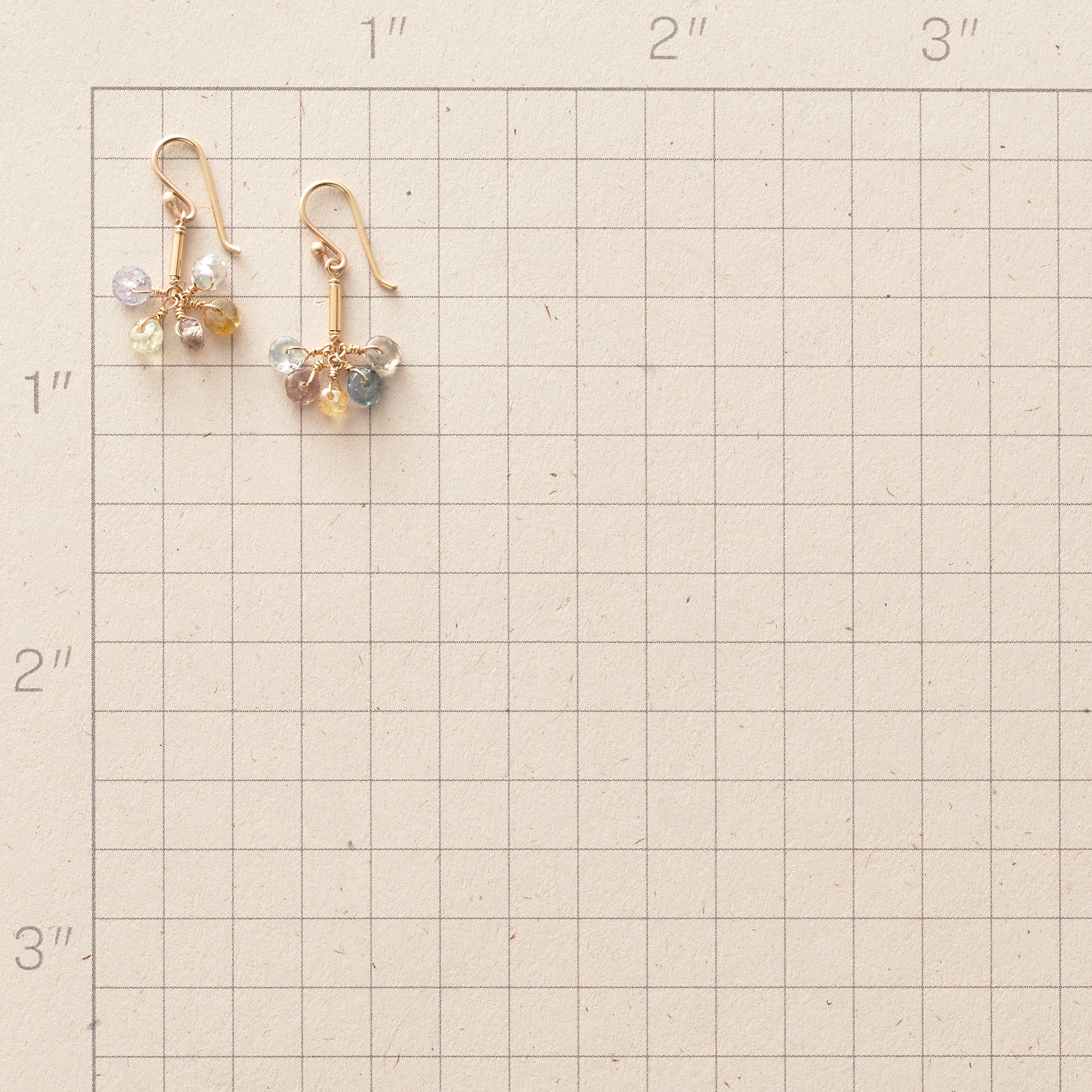 A bundle of faceted sapphires, hand-wrapped with wire and dangling from a single heishi bead, burst with color in these 14kt gold earrings by Polly Hart. French wires. Made in the USA. Exclusive. 7/8″L.