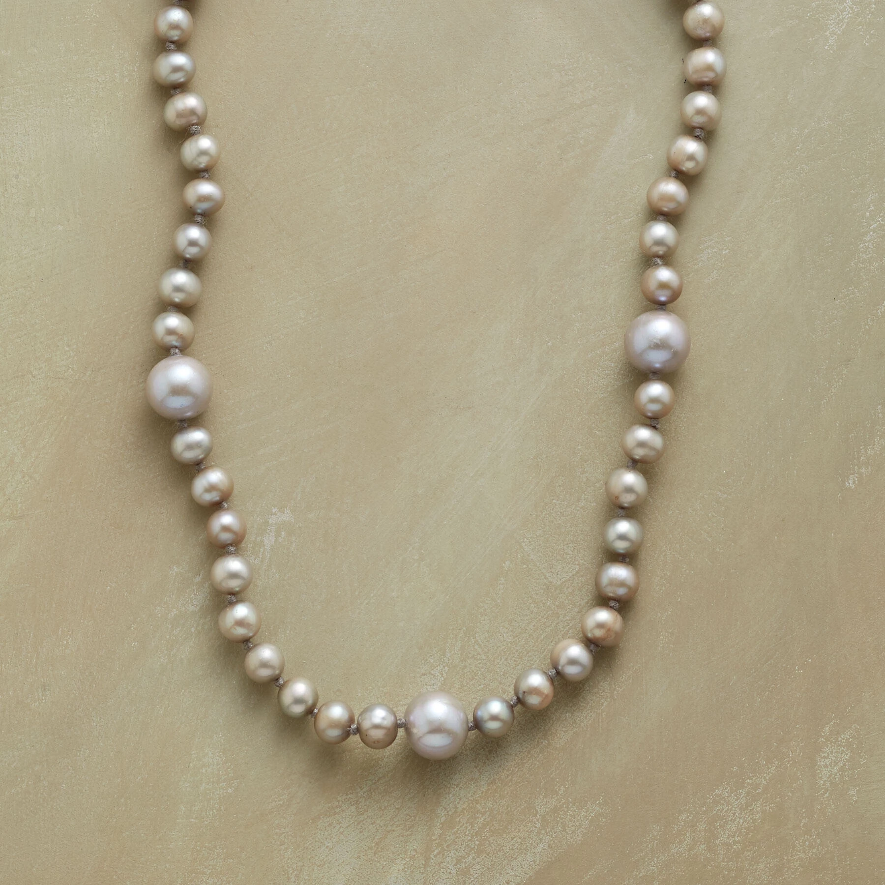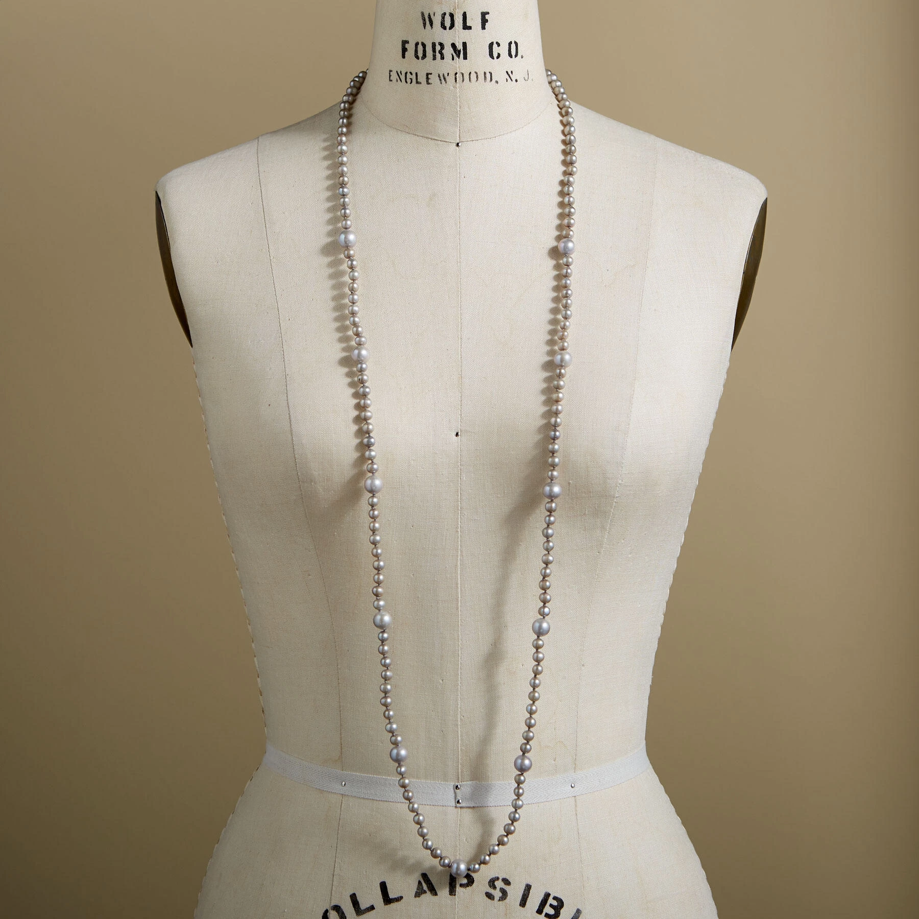 Chan Luu distinguishes her long pearl necklaceโa rope of gray cultured pearlsโwith larger pearls spaced along its length, which can be doubled. Handcrafted with a sterling silver lobster clasp. 43″L.