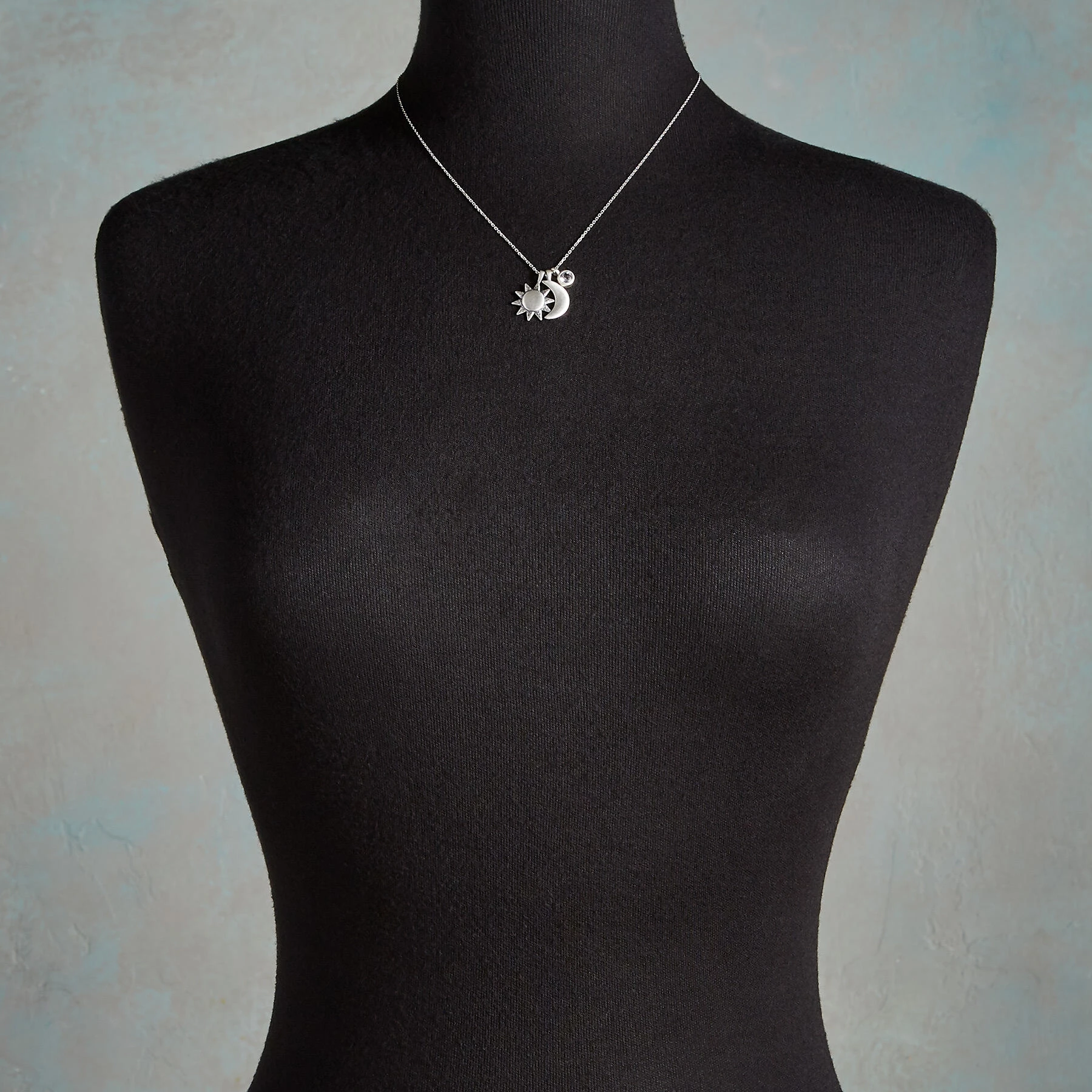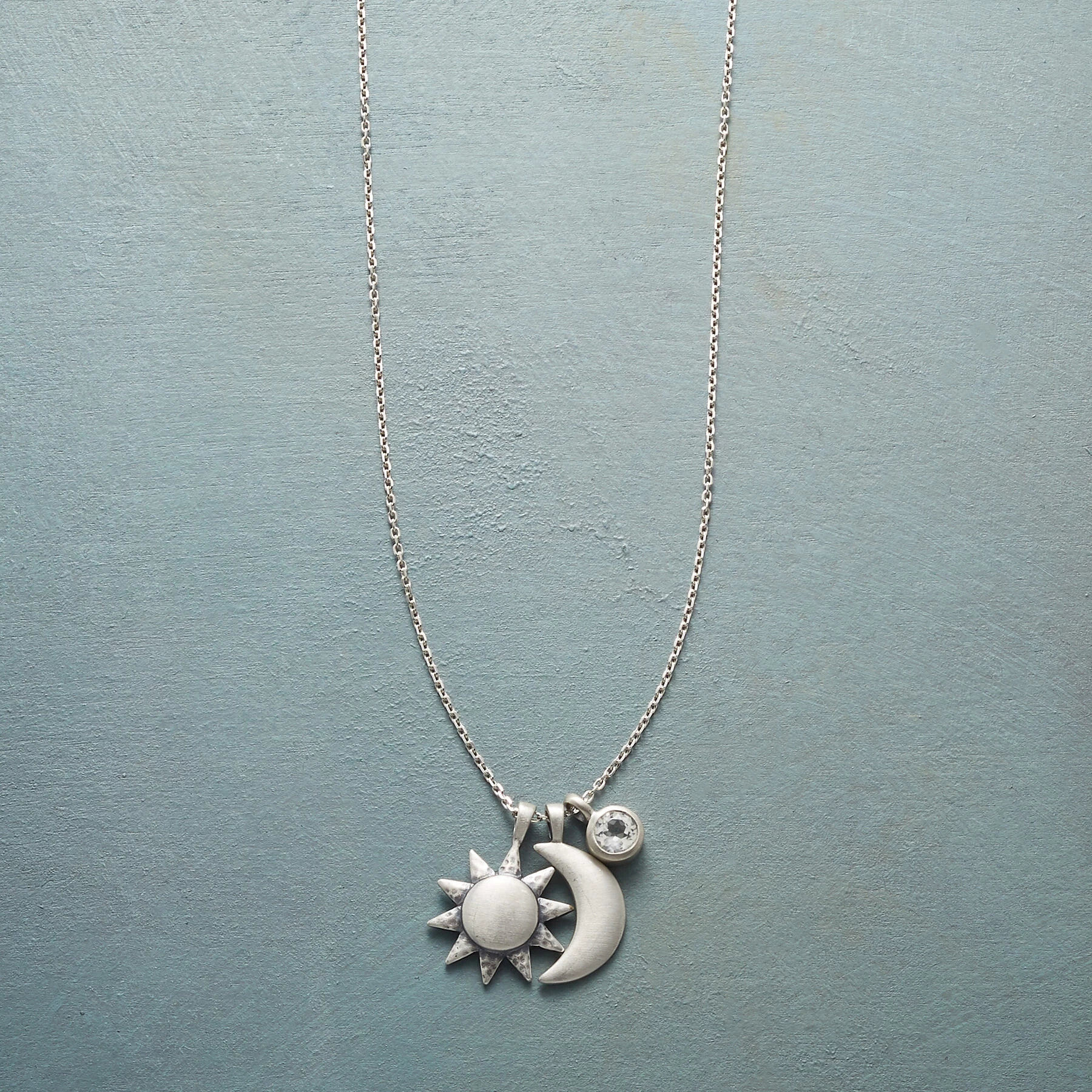 Let her know you think the world of her with this handcrafted necklace. Sterling silver set alight with a sparkling white topaz charm. Spring ring clasp. Exclusive. 18″L, 3/4″ drop.