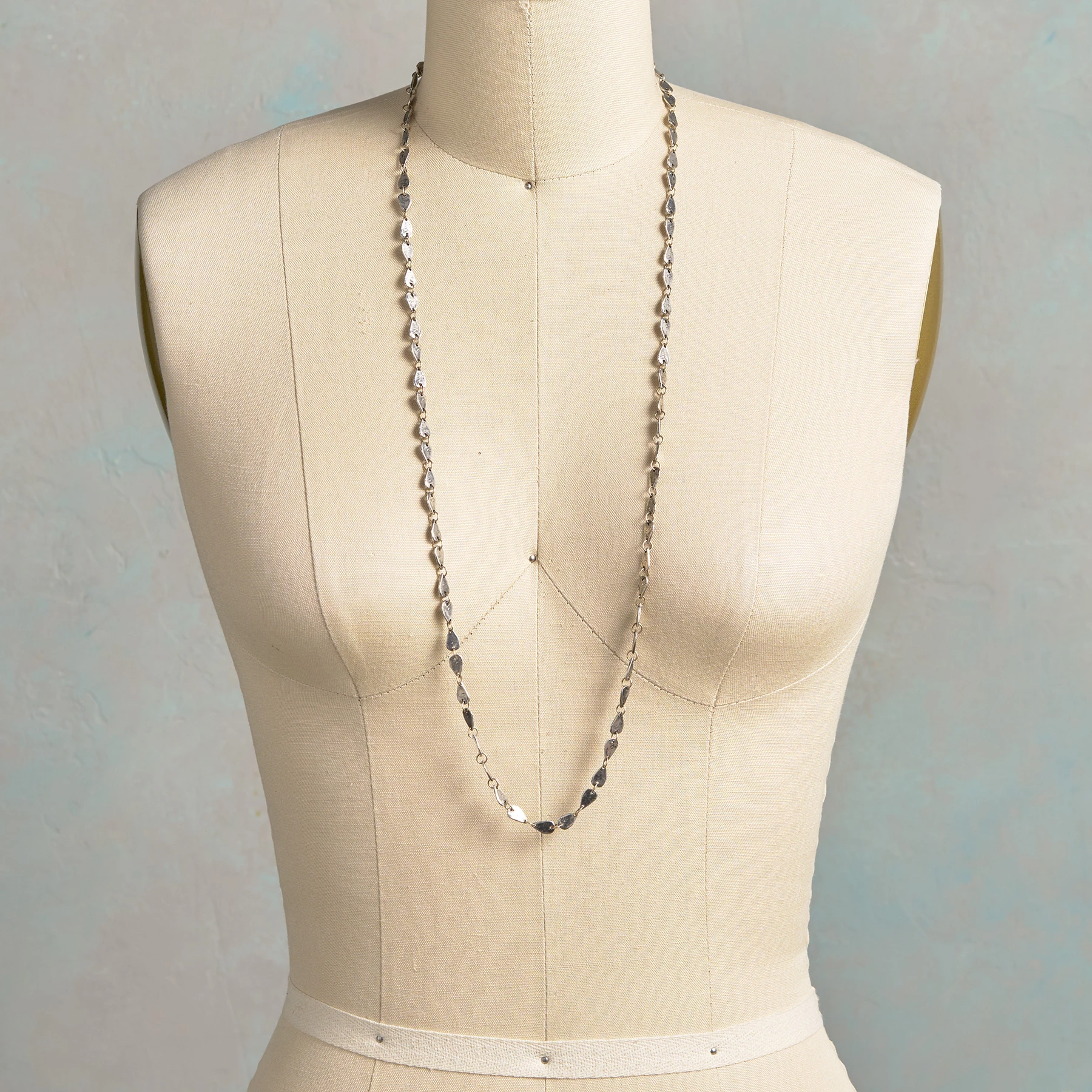 Rings of 14kt gold link Jes MaHarry’s handcrafted sterling silver raindrops, lending glints of sun amid the downpour. Long and lovely, it’s elegant solo and perfect for layering. Lobster clasp. Handmade in USA. Exclusive. 33″L, 3/16″W.