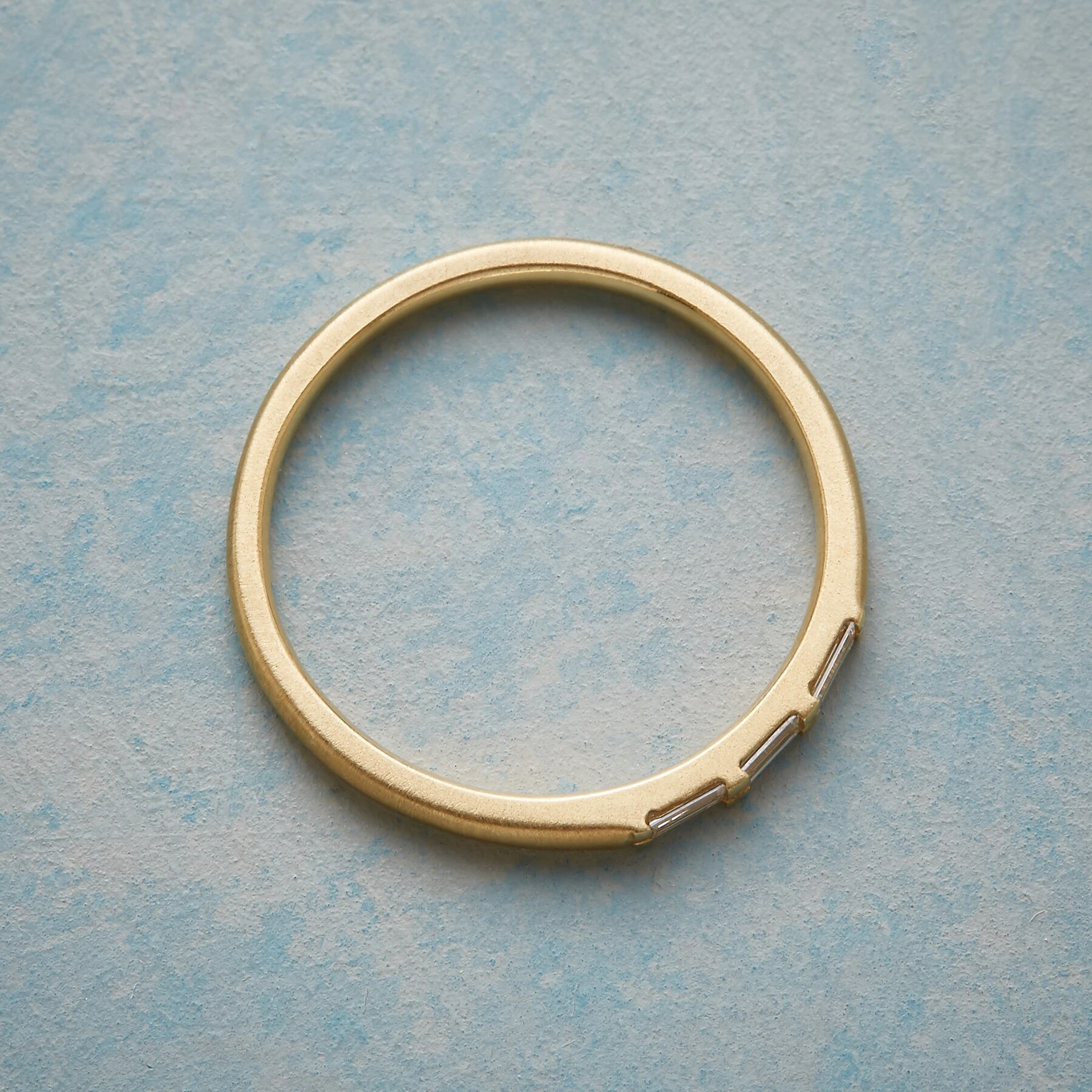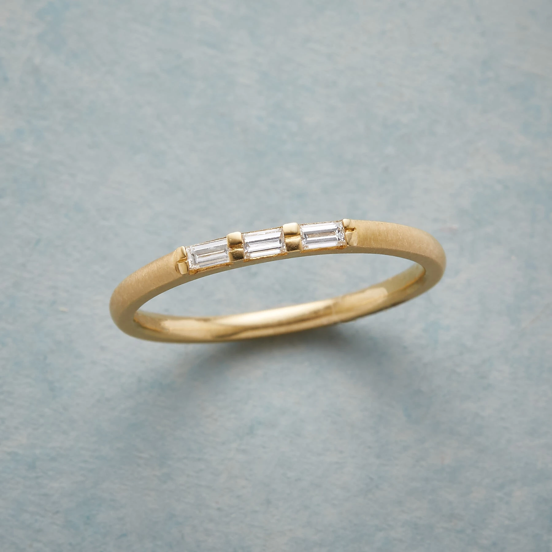 In a sparkling complement to matte 14kt gold, Anne Sportun embeds three baguette-cut diamonds. Handmade. Exclusive. Whole sizes 5 to 8.